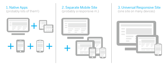 - Universal Responsive Site: potentially the most efficient to maintain, but may take more time to design and build